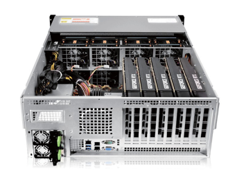 The ESD KG4204-V3 is an artificial intelligence server developed based on the third-generation Intel® Xeon® Scalable processor. It can support four NVIDIA GPU accelerator cards (actively cooled), dual Intel® Scalable processors, up to 4TB DDR4 ECC RDIMM/LRDIMM memory, and can be installed in a tower or rack. It adopts an independent air duct design to ensure heat dissipation and reduce system noise. It is suitable for applications such as artificial intelligence, deep learning training, video decoding, and big data analysis.